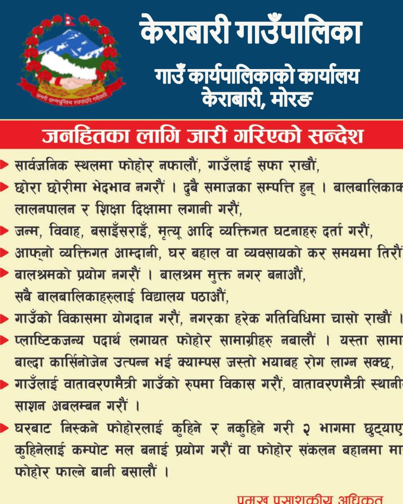 केराबारी । स्वास्थ्य सेवालाई प्रभावकारी बनाउदै सकेसम्म धेरै भन्दा धेरै सेवा दिने उदेश्यले केराबारी पालिका अस्पतालबाट आँखा उपचार समेत सुरु गरिने भएको छ ।